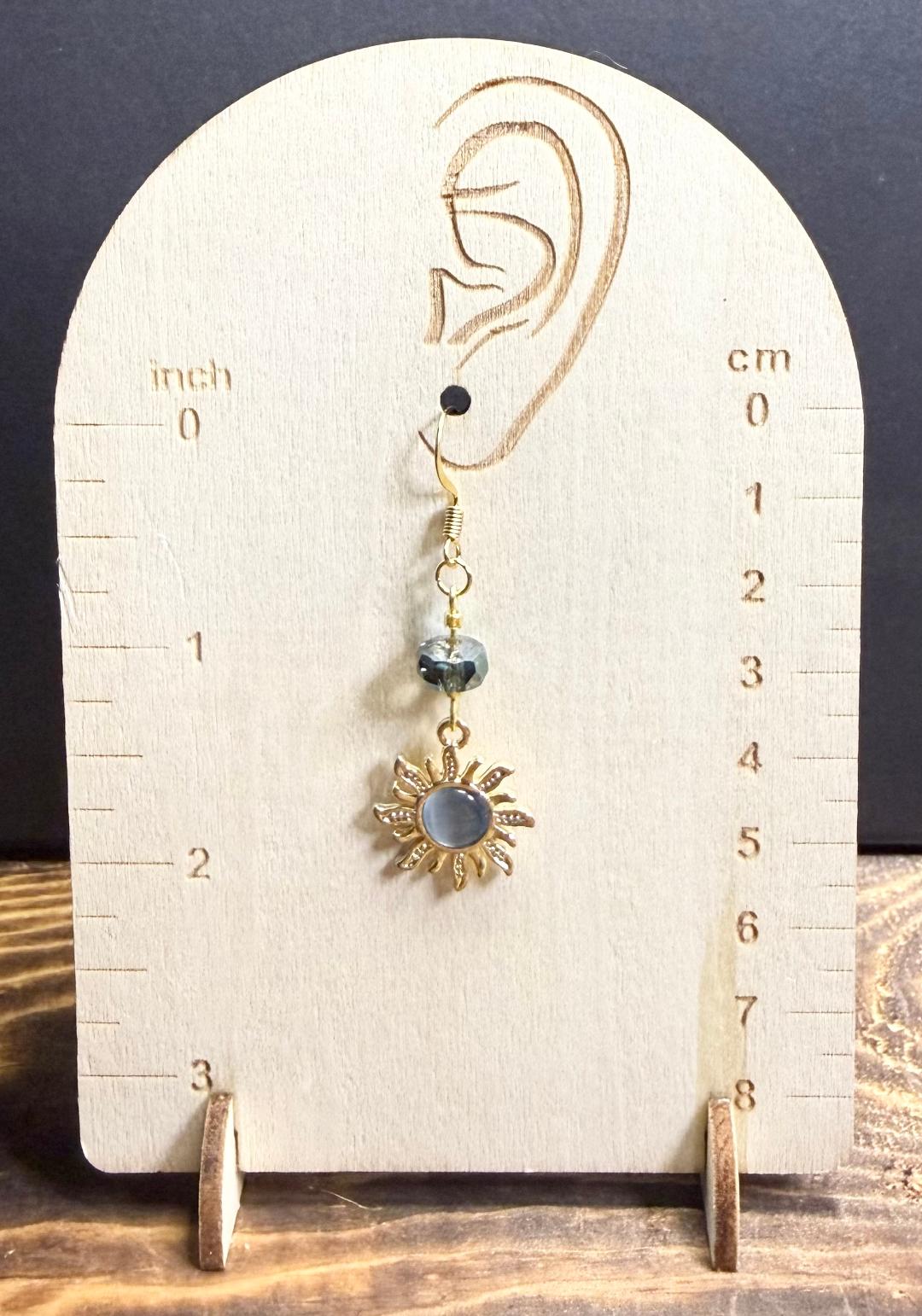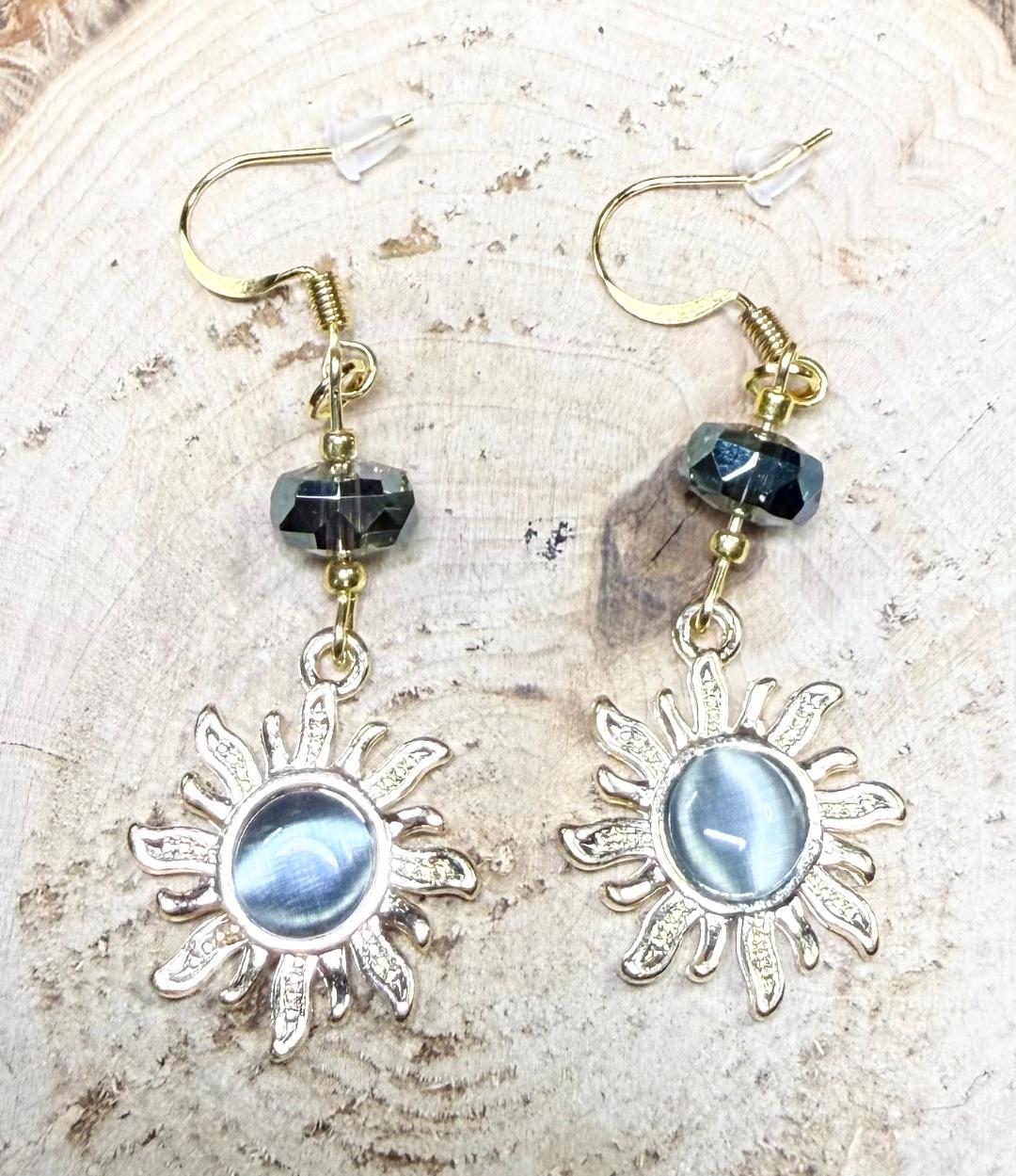NEW BLUE CAT'S EYE CENTER SUNBURST EARRINGS W/ GLASS BEADS