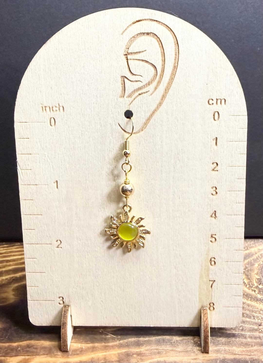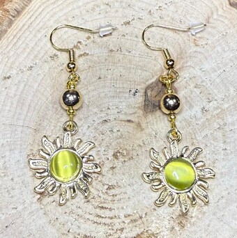 NEW YELLOW/GREEN CAT'S EYE CENTER SUNBURST EARRINGS W/ BEADS