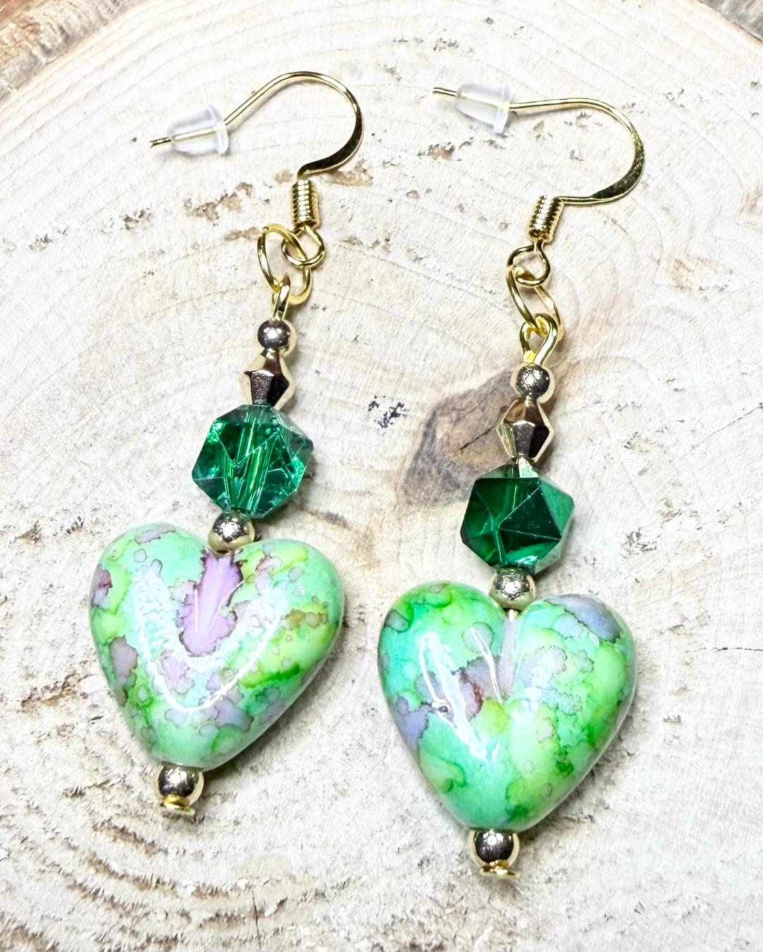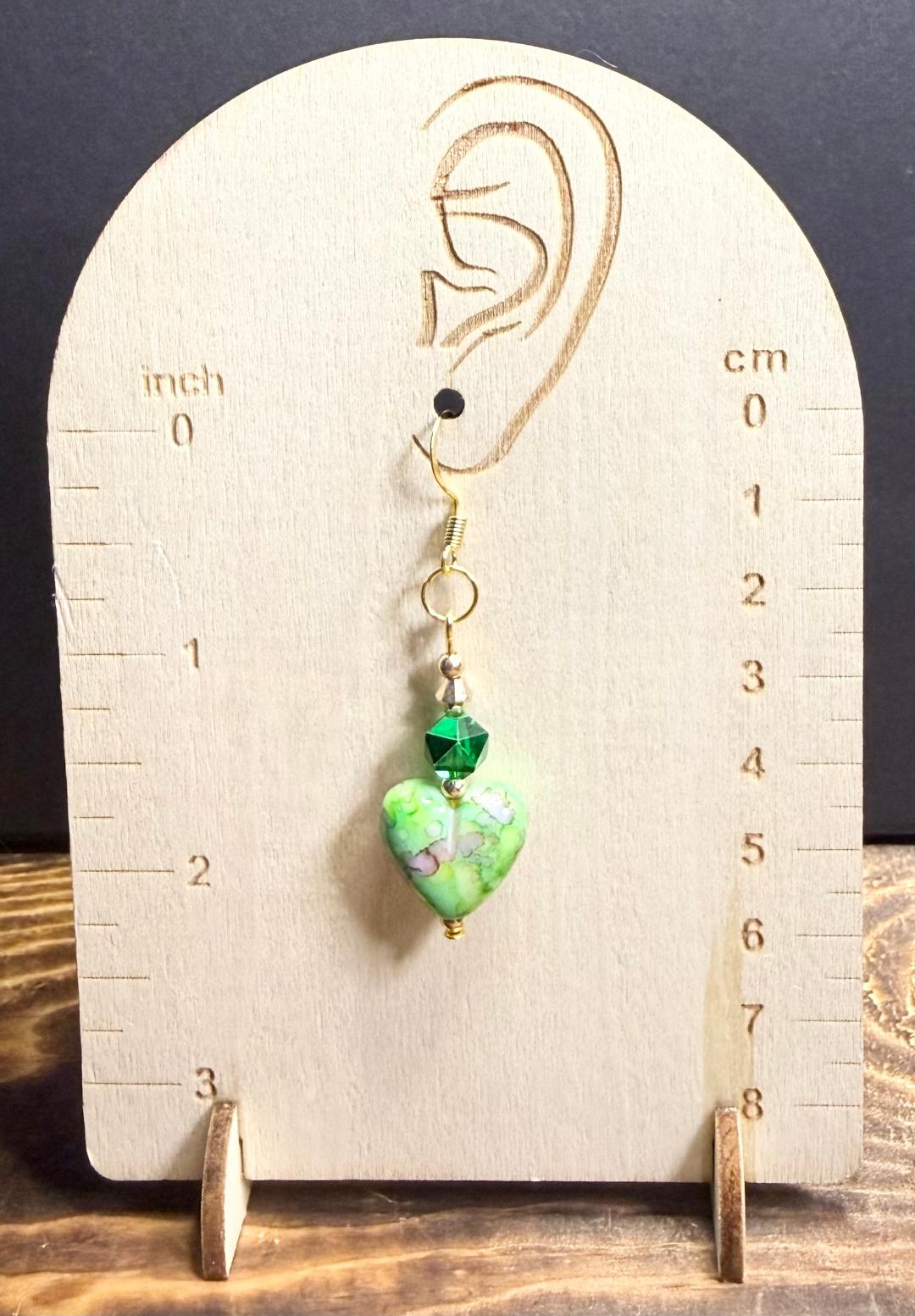 NEW BANDHANI STYLE PAINTED GREEN HEART CHARM EARRINGS