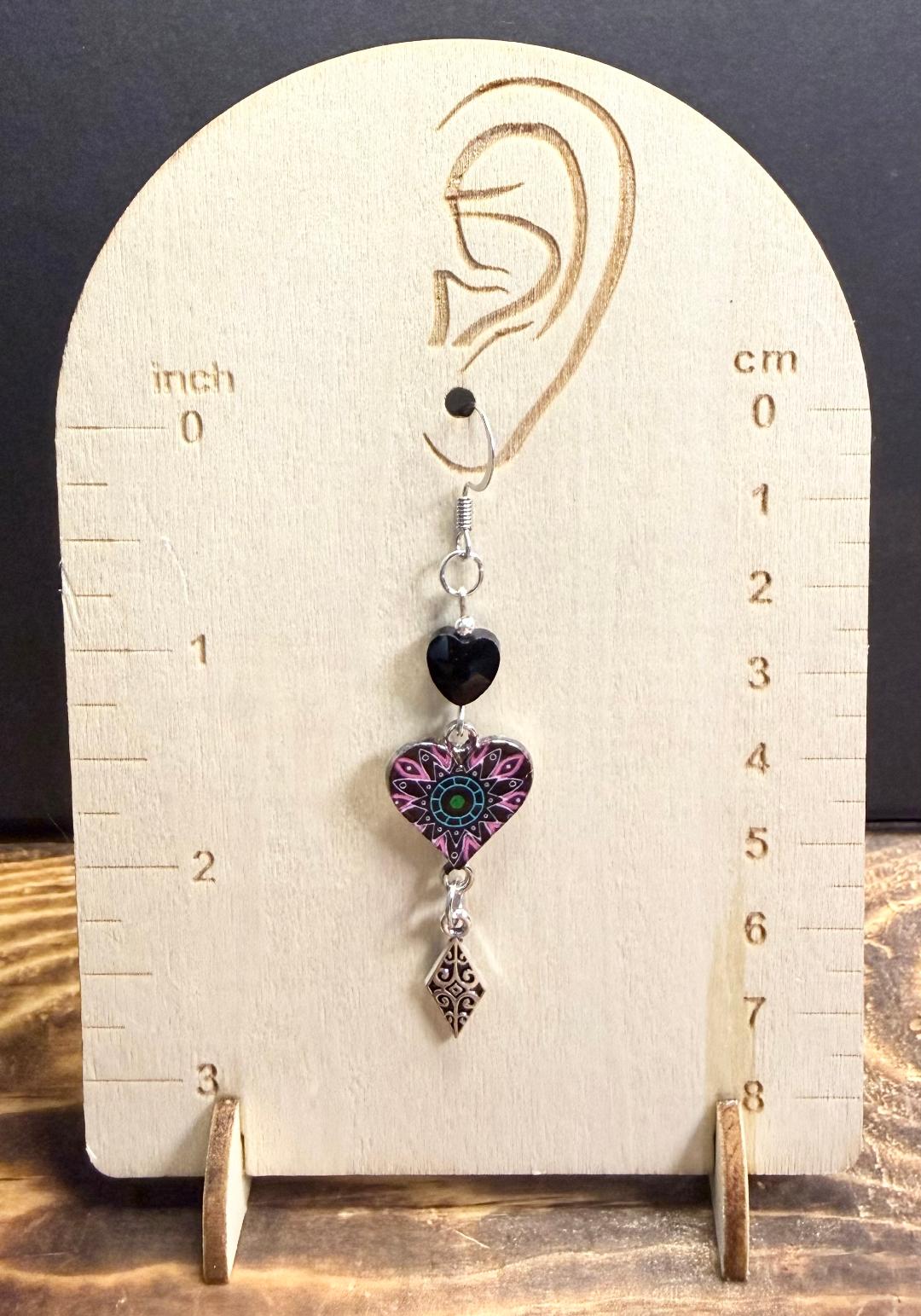 NEW COLORFUL HEART CHARM EARRINGS W/ GLASS BLACK HEART BEADS