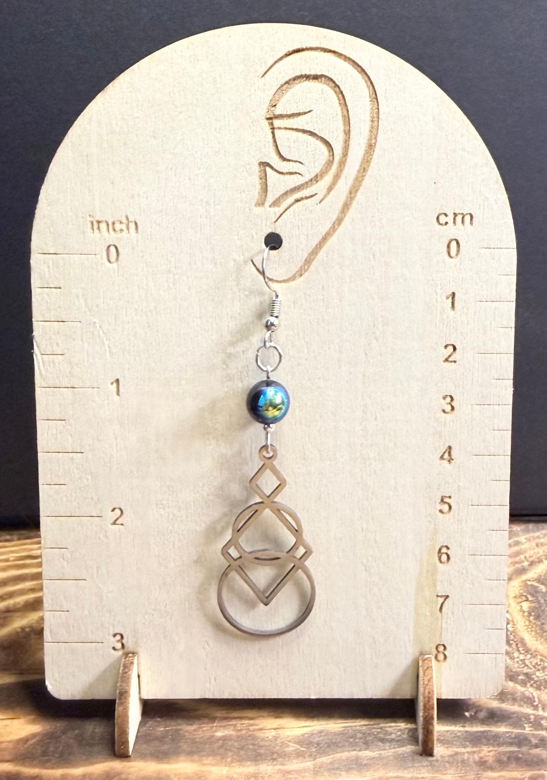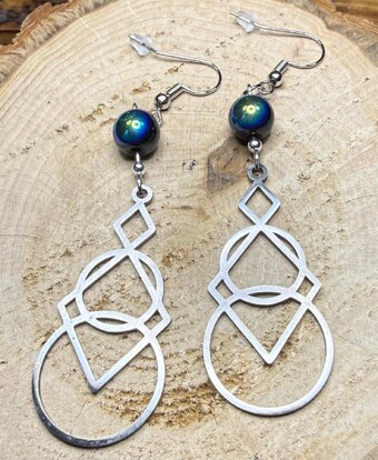 NEW GEOMETRIC SHAPES IN SILVER STAINLESS STEEL EARRINGS W GLASS BEADS