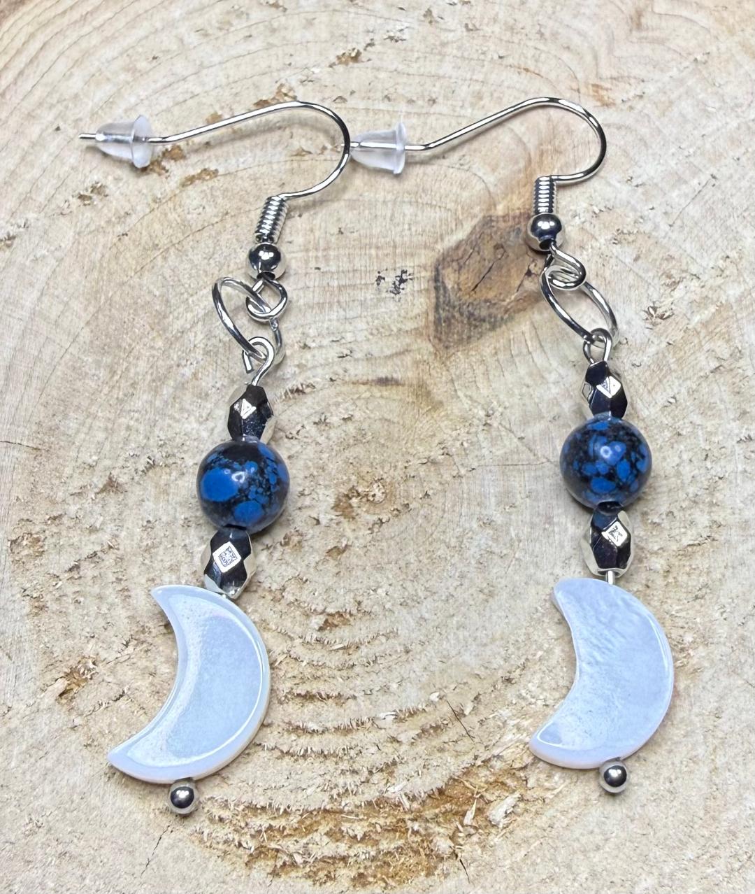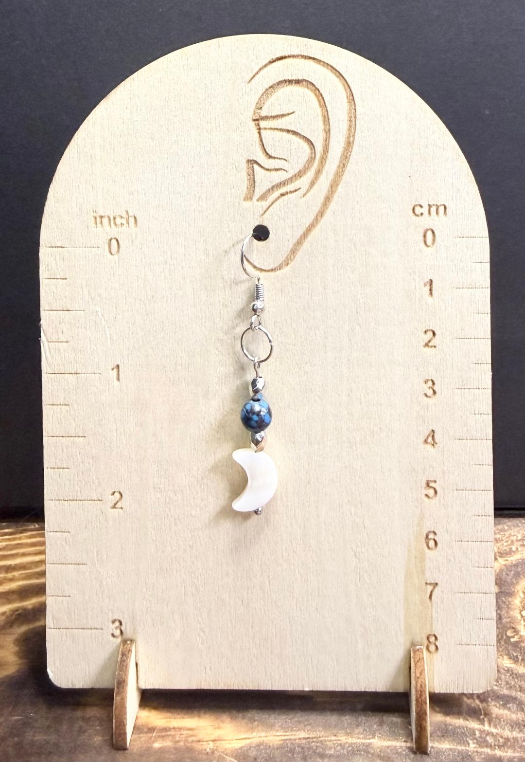 NEW SHELL CRESCENT MOON EARRINGS W/ BLUE EARTH STYLE BEAD